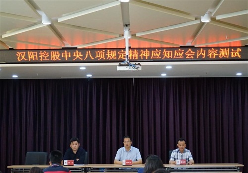 2018年5月7日下午18點,由武漢市漢陽控股集團有限公司召開的漢陽控股中央八項規(guī)定精神應知應會內(nèi)容測試活動終于圓滿收場,本次測試內(nèi)容結(jié)合《中共中央政治局貫徹落實中央八項規(guī)定實施細則》和省、市、區(qū)制定的實施辦法,以及中紀委列出的《違反八項規(guī)定清單80條》,旨在貫徹落實黨的十九大精神及習近平新時代特色社會主義思想,傳達區(qū)紀委推動中央八項規(guī)定精神落地生根,進一步增強黨員干部紀律規(guī)矩意識的精神。