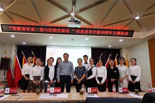 2018年9月29日下午,漢陽(yáng)控股黨委與團(tuán)總支聯(lián)合組織的“‘控股青年說(shuō)·我與漢陽(yáng)共奮進(jìn)’——慶祝建國(guó)69周年暨改革開(kāi)放40周年主題活動(dòng)”在金龍公館寫(xiě)字樓11樓隆重舉行,漢陽(yáng)控股黨委及紀(jì)委成員、經(jīng)營(yíng)班子領(lǐng)導(dǎo)、工會(huì)主席和團(tuán)總支書(shū)記參加了活動(dòng)。